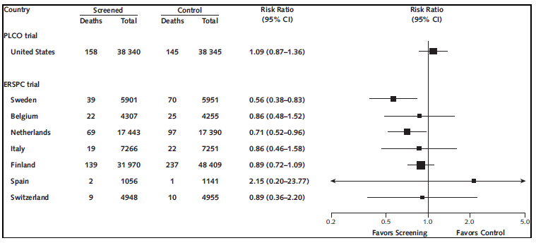Clinical Guideline Annals of Internal Medicine U.S. trial did not demonstrate any reduction of prostate cancer mortality. The European trial found a reduction in Mortality results from a randomized prostate-cancer screening trial. N Engl J Med. 2009;360:1310-9. [PMID: 19297565] 20. ... Fetch Full Source